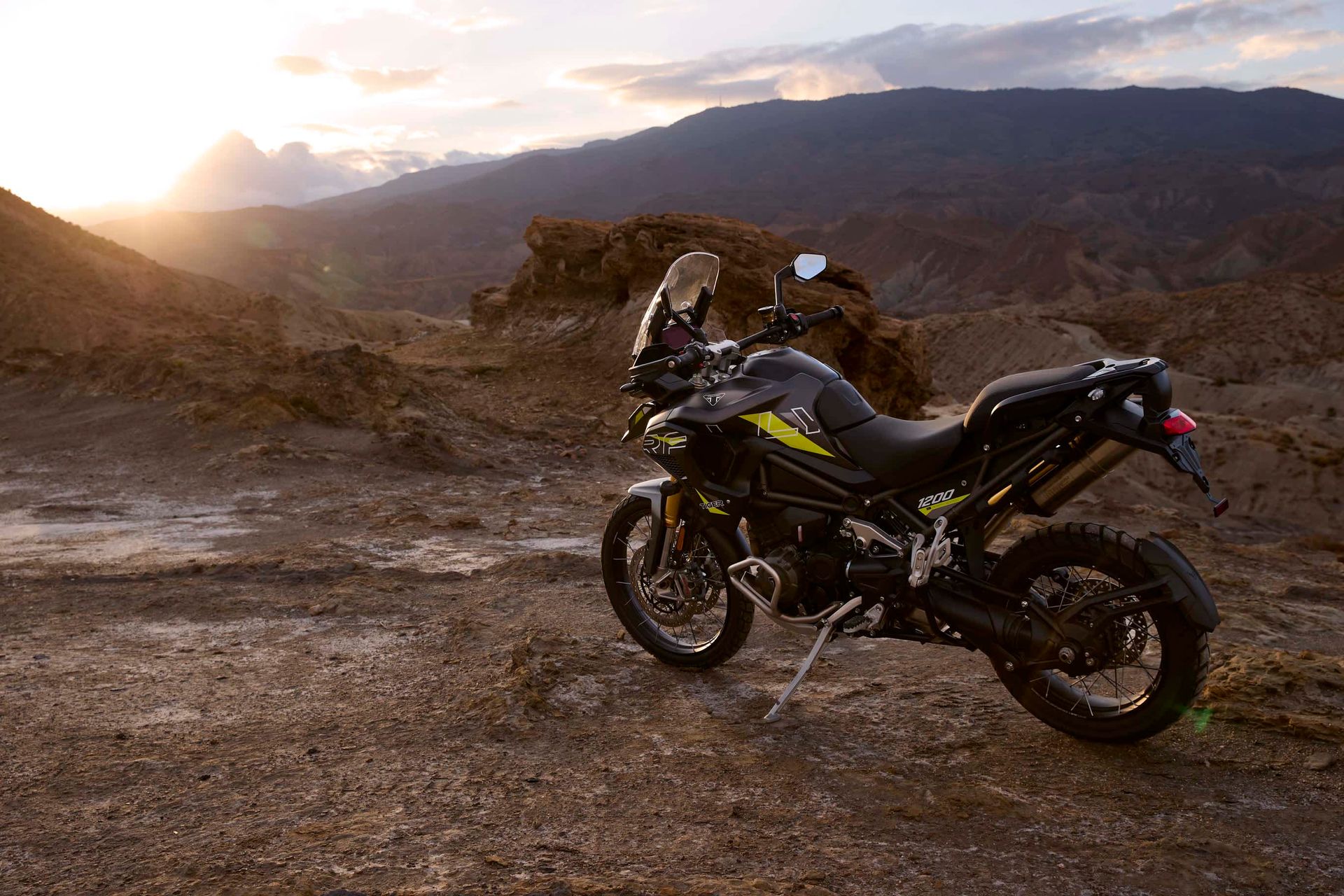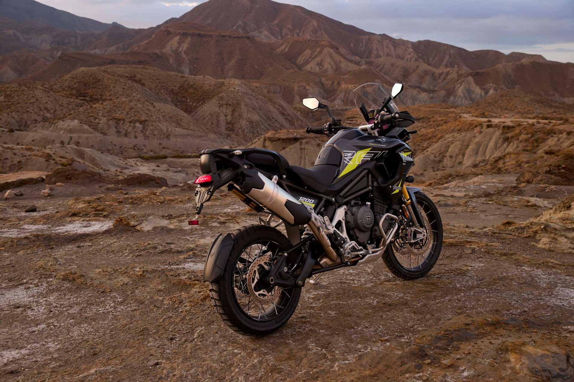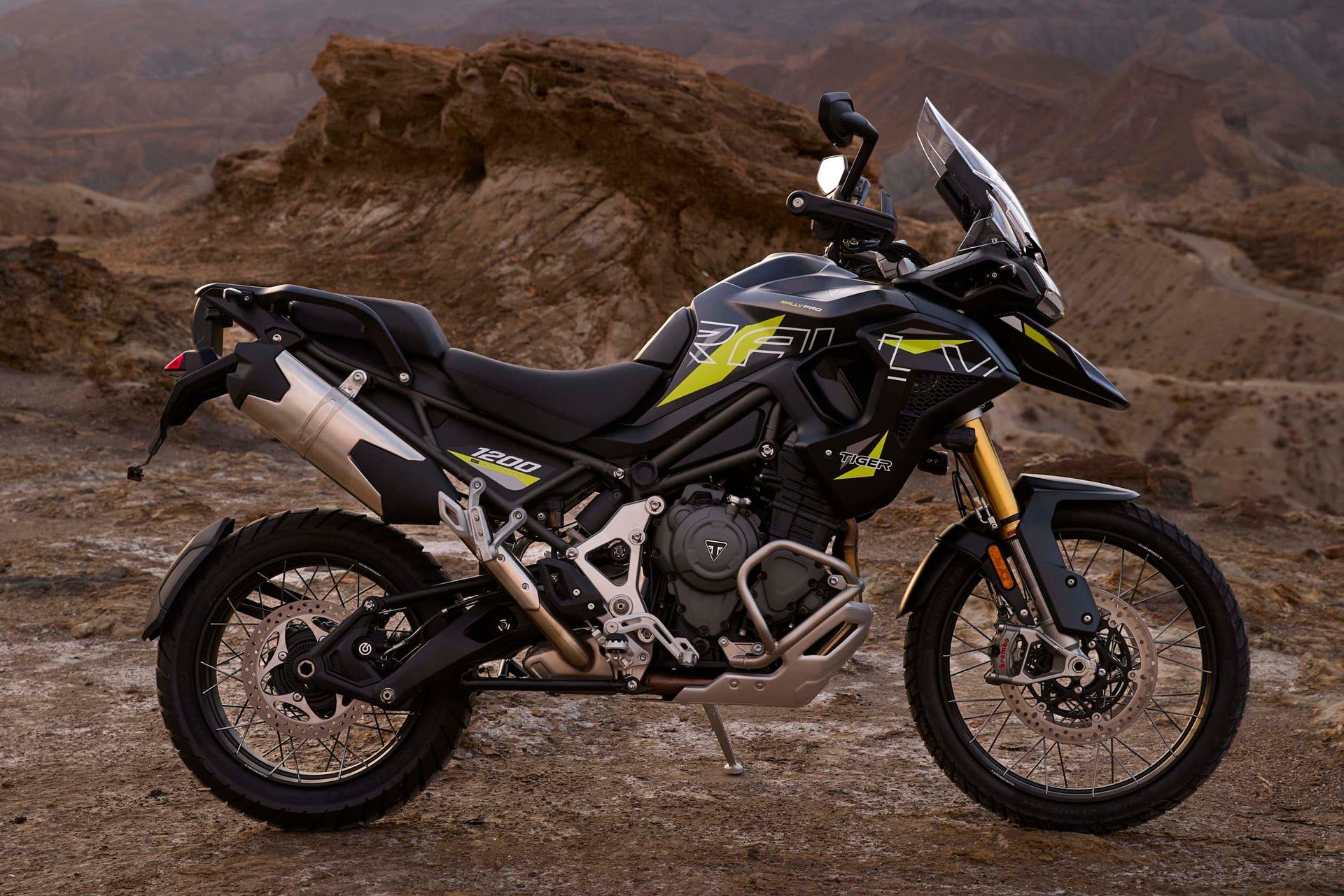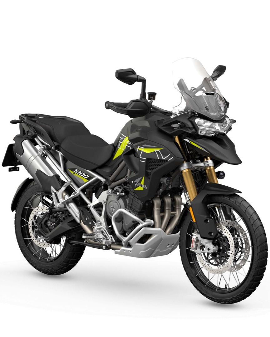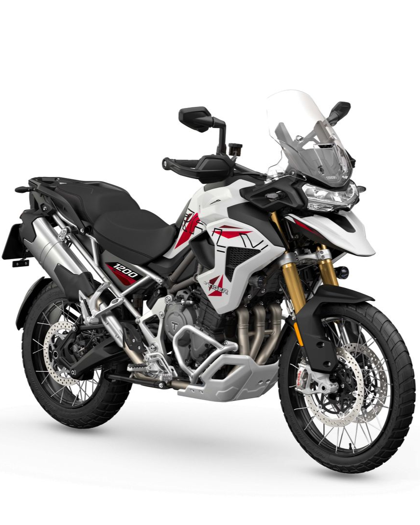 The Tiger 1200 Desert Edition comes in a choice of Satin Granite or Crystal White with vibrant detailing and Desert Edition graphics. The most dynamic scheme featured on a Tiger 1200.